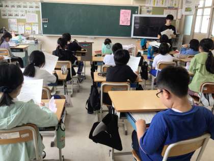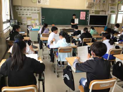 5の2の朝の会です。 配布物ちゃんとありますか?