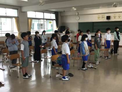 5の2 音楽です。 「小さな約束」 たまごの口で歌えたかな?