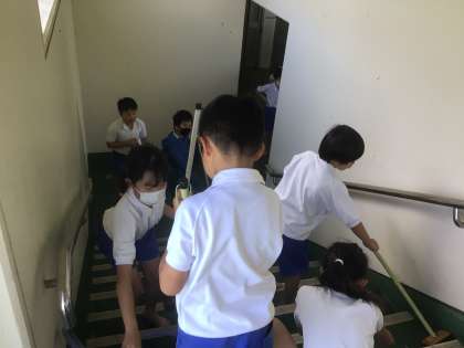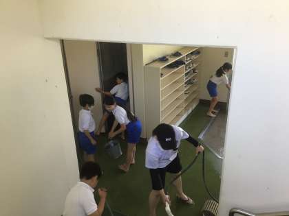 4年生 プールそうじだよ 更衣室の掃除だよ。 気持ちよく使えるよ!