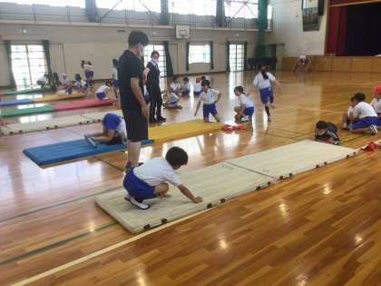 6月3日 その5 公開日 2024/06/03 更新日 2024/06/03 校長室から 3の1 体育だよ。 後ろ回りの練習だよ。 ちょっと斜めにするとまわりやすいかも。 踏切板で斜めにしよう。 校長 3年