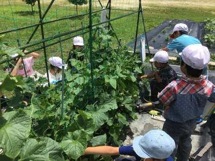 6月10日 その2 公開日 2024/06/10 更新日 2024/06/10 校長室から 2の2 生活です。 花が萎れてきたら花の根もとに小さなナスができてきたよ。 いちばん最初にできたきゅうりはこんなに大きいよ。 私のトマトはあとは赤く色づくだけだよ。 このツル,僕の背より大きくなったよ。 素敵な声がいっぱい! 校長 2年