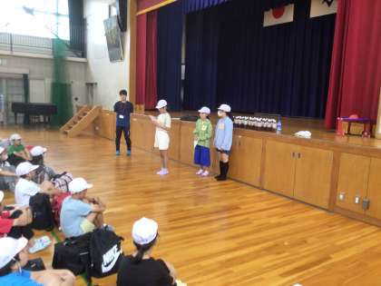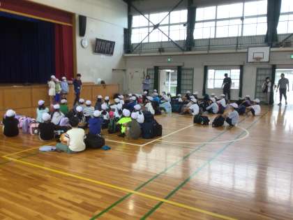 出発式 行ってきます。 みんなで高め合う,認め合おう,代表の子話してくれました。
