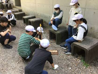 がんばれ その3 1班が最初に火起こし完成!