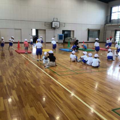 1年生 体育です。 マット遊びです。 けっこうな運動量です。 上手になろう!