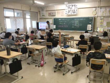 7月16日 その5 公開日 2024/07/16 更新日 2024/07/16 校長室から 6年生 算数です。 円の面積を出しています。 半径✖️半径✖️円周率 なぜ? 説明できる? 校長 6年 特別支援学級