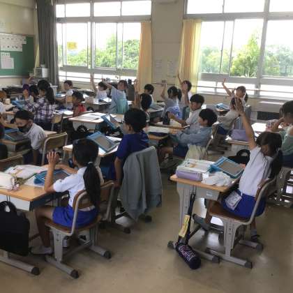 7月17日 その1 公開日 2024/07/17 更新日 2024/07/17 校長室から 3の1 算数です。 あまりのある割り算。 一袋に3個ずつ入れます。 あめ13個あります。 何袋できて、いくつあまる? タブレットで実際にやっていますね。 校長 3年