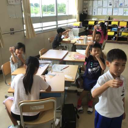 1の1 生活科です。 あさがおの花で色水。 けっこう色が出たね。