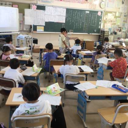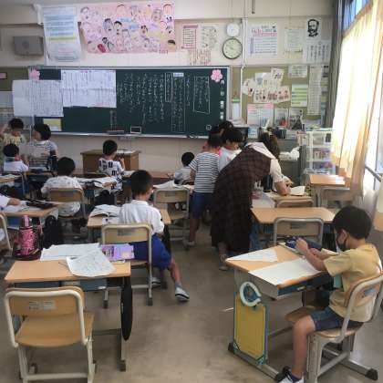 9月5日 その5 公開日 2024/09/05 更新日 2024/09/05 校長室から 1の1 国語です。 原稿用紙の書き方の勉強だよ。 はじめはひとマス空けるんだね。 ,や 。もひとマス使うんだね。 校長 1年