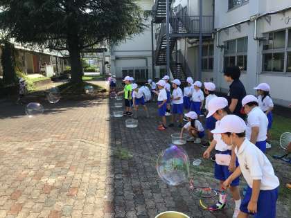 1の2 生活です。 シャボン玉づくりです。 楽しい!