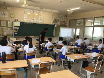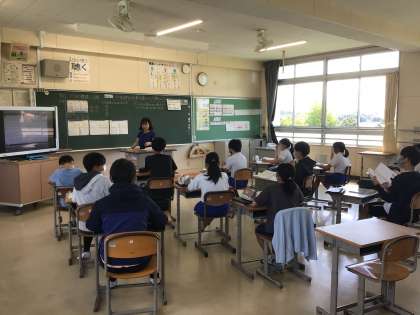 6年生 算数です。 少人数指導です。 データの特徴を表す値についての勉強です。