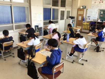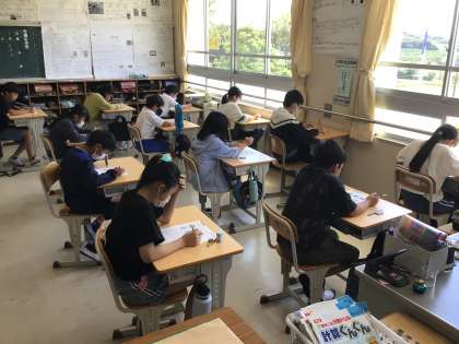 5の2 テスト中におじゃましました。 理科のテストです。 がんばって!