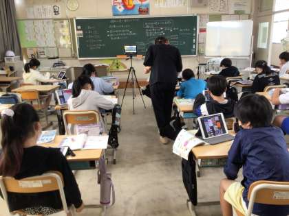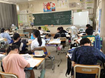 9月19日 その9 公開日 2024/09/19 更新日 2024/09/19 校長室から 5の1 理科です。 花のつくり おしべやめしべについて勉強したよね アサガオのおしべって5本なんだね。 へえ! 校長 5年