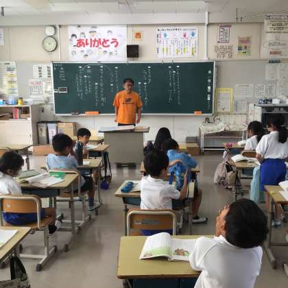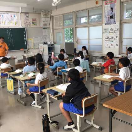 9月24日 その2 公開日 2024/09/24 更新日 2024/09/24 校長室から 2の2 国語です。 「たまおじさんは弟か妹がいるの」 「おれには子どもがいる」 「何人?」 「4人だ」 「じゃあ,一つじゃ足りないね」 「ぼくのも、僕のも、ボクのもあげる」 校長 2年