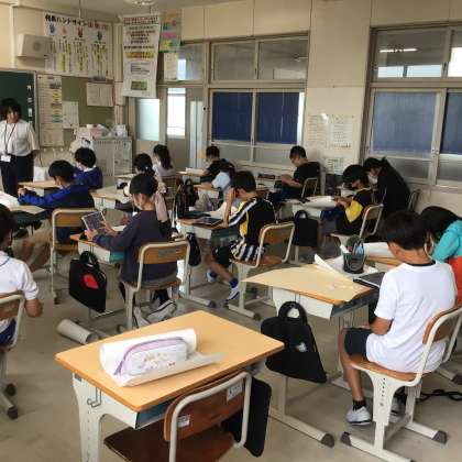 4の1 図工です。 読書感想画 下書きから清書に入っています。