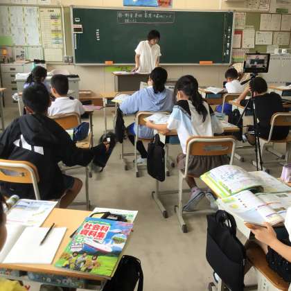 5の1 社会です。 農業についての勉強です。 野菜や果物、畜産について調べていこう。