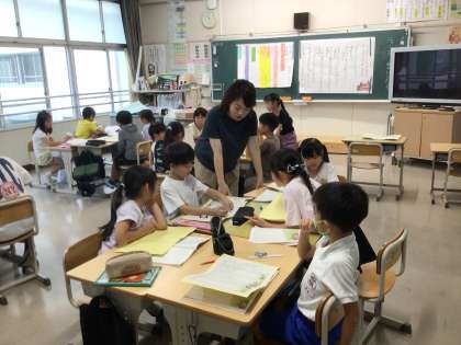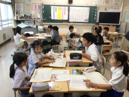 2の1 国語です。 ニャーゴ 場面ごとにどんな出来事があったのか ワークシートにまとめています。