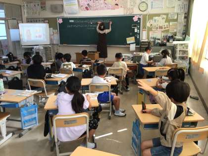 1の1 算数です。 どっちが長いかな? 鉛筆の長さを比べよう。どうやったら比べられる?