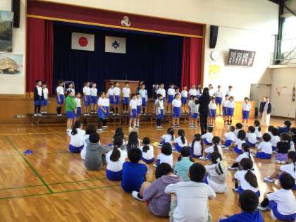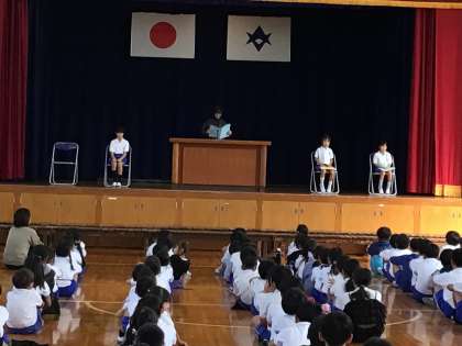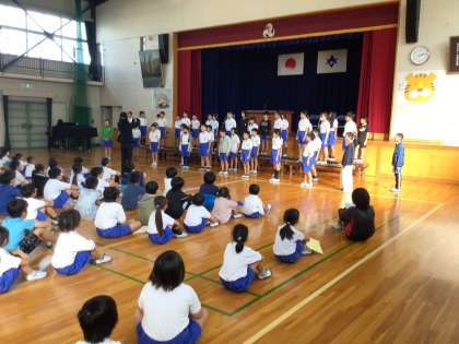 10月11日 その4 公開日 2024/10/11 更新日 2024/10/11 校長室から 前期終業式です。 代表児童の発表。 4名の子が前期に頑張りやこれから頑張りたいことを発表しました。 すばらしい内容,立派な姿ですごく感心しました。 式に続き,4年生が全校に歌声を披露してくれました。 心を合わせた合唱です。 ブラボー! 校長 行事