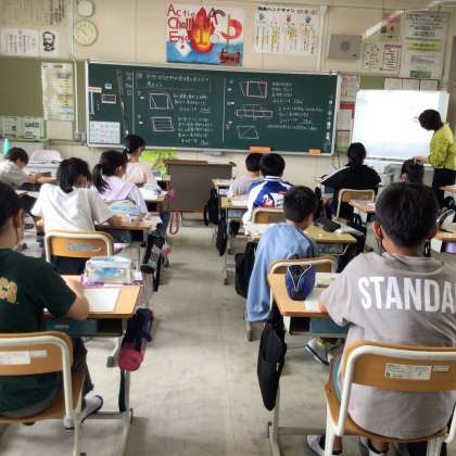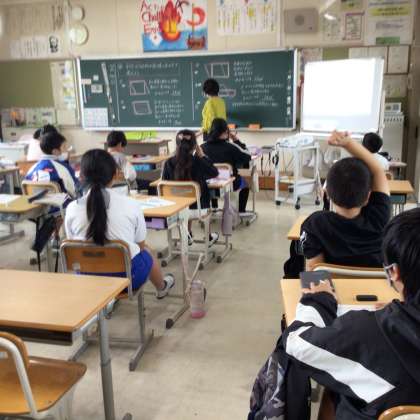 10月16日 その6 公開日 2024/10/16 更新日 2024/10/16 校長室から 5の1 算数です。 平行四辺形の面積 どうしたら面積がであるか、じっくり考えよう。 考えて,ああでもない,こうでもないって、これが大事! 校長 5年