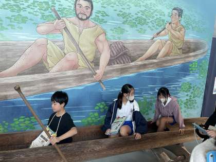 10月16日 その10 公開日 2024/10/17 更新日 2024/10/17 校長室から 6年生の博物館と田籾の地層見学 今年度完成した博物館。 博物館,小学校,中学校が連携して、 展示や活動,バスの配車などをしているんだよ。 校長 6年 特別支援学級