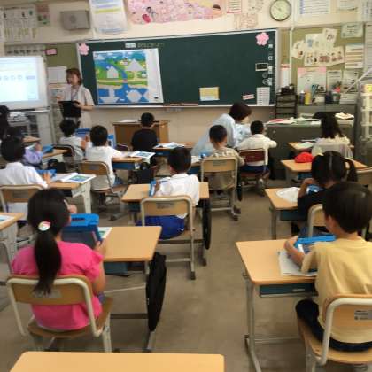 教育委員会のお客さんが学校の様子を見にきてくれたよ。