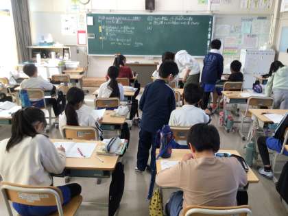 11月13日 その7 公開日 2024/11/13 更新日 2024/11/13 校長室から 4の2 算数です。 ひとまとめにして( )を使った式にしよう。 500円持っています。 1冊90円のノートを4冊買った時のお釣りは? 校長 4年