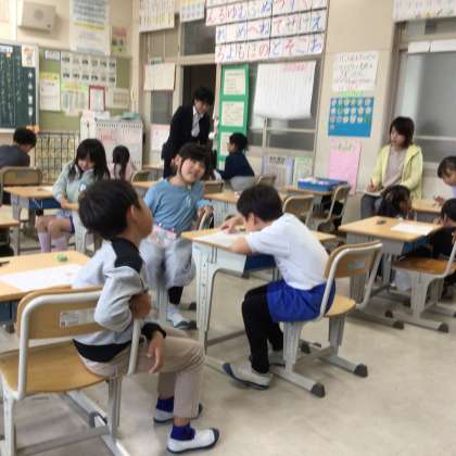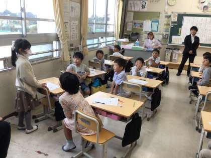 11月14日 その4 公開日 2024/11/14 更新日 2024/11/14 校長室から 1の2 国語です。 サラダで元気 アフリカゾウが飛行機からせかせかと降りてきたよ。 サラダが出来上がってからの仕事はなあに? 校長 1年