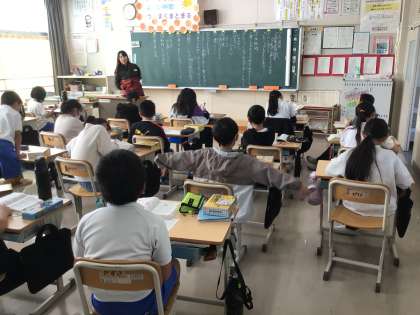 4の1 国語です。 難しい語句調べですね。 調べたことを共有化しています。