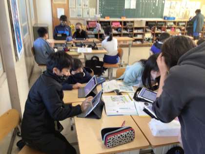 できたポスターをグループで見合って感想やアドバイスをしよう。