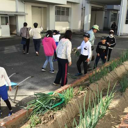 やまもも学級 大きな育ったよ。 ねぎの収穫だよ。