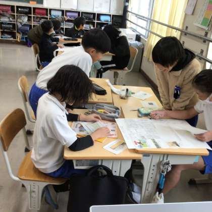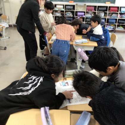 12月16日 その6 公開日 2024/12/16 更新日 2024/12/16 校長室から 4の1 社会です。 新聞をつくっているよ。 内容は? 豊田の野文化や芸能や風俗についてまとめているね。 校長 4年