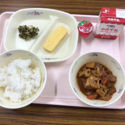 今日の給食です。 春の七草をふりかけのようにして食べたよ。 お腹がスッキリ!