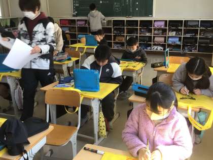 4の2 今年度の作品をまとめているのですね。 図工に習字。 いっぱいがんばったね!