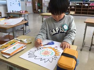やまもも ひまわりを描こう(2組 4月17日) 公開日 2025/04/17 更新日 2025/04/17 各学年から 画用紙いっぱいに、クレヨンを使ってひまわりを描いています。色鮮やかなひまわりが咲きそうです。 特別支援学級