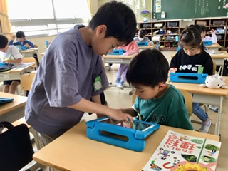 3年生 発表ノートを使って(1組 4月23日) 公開日 2025/04/23 更新日 2025/04/23 各学年から 前回の理科で見つけた春のいきものの特徴を、学習用タブレットの発表ノートにまとめています。色、形、大きさなど観察して見つけたことを書き込んでいます。 3年