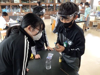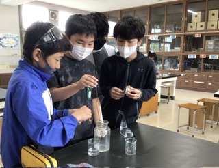 6年生 空気を調べよう(1組 4月25日) 公開日 2025/04/25 更新日 2025/04/25 各学年から ものが燃える前と燃えた後の空気には何か違いがあるのか、気体検知管や石灰水を使って調べています。自分の予想と実験の結果は一致していたでしょうか。 6年