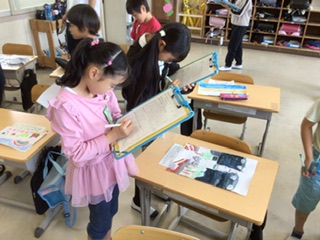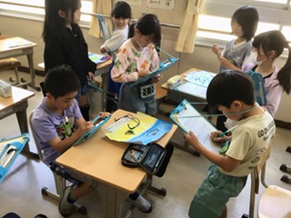 3年生 図工(2組 5月28日) 公開日 2025/05/28 更新日 2025/05/28 各学年から 描いた絵をお互いに見あって、感想をプリントに記入しています。楽しいところや工夫されたところをたくさん見つけて、メモしています。 3年