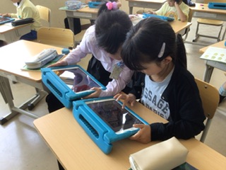 3年生 自然のかくし絵(1組 5月28日) 公開日 2025/05/28 更新日 2025/05/28 各学年から 国語で学習した「自然のかくし絵」。今日は学習用タブレットで、保護色で身を守る生き物のカードを作ります。図書館で借りた本やインターネットを使って、カードづくりを進めています。 3年