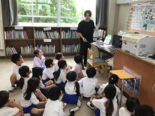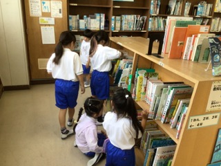 1年生 図書館で(5月30日) 公開日 2025/05/30 更新日 2025/05/30 各学年から 本の借り方や返し方について、もう一度全員で確かめました。しっかり覚えて、たくさん本を借りてください。 1年
