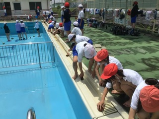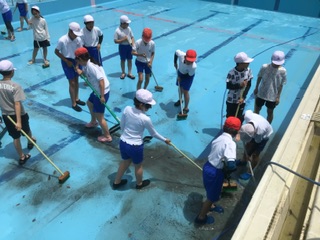 5、6年生 プール掃除その1(6月2日) 公開日 2025/06/02 更新日 2025/06/02 各学年から 4年生の後は、5・6年生が引き継ぎます。5年生はプールサイドを、6年生はプールの中を磨き上げています。 5年 6年