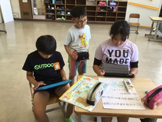 やまもも 休み時間(6月18日) 公開日 2025/06/18 更新日 2025/06/18 各学年から 今日は暑さが厳しくて、外遊びができません。みんな、教室や図書館で静かに過ごしています。やまもも学級の休み時間の様子です。 特別支援学級