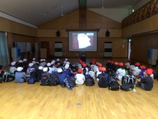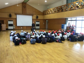 お世話になる所員の方に挨拶をした後、自然の家の使い方について説明を受けています。