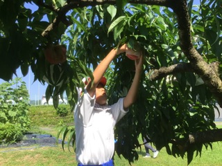 3年生 桃の収穫(6月30日) 公開日 2025/06/30 更新日 2025/06/30 各学年から 講師の方にやり方を教えていただき、早速収穫です。暑さが厳しいため、冷房の効いた理科室で、休憩を入れながらの作業になりました。美味しそうな桃がたくさんとれました。 3年