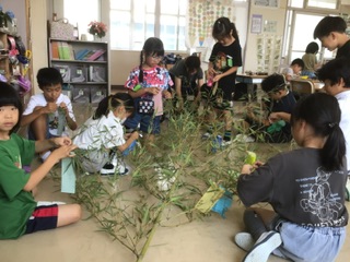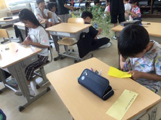 3年生 星に願いを(1組 7月1日) 公開日 2025/07/01 更新日 2025/07/01 各学年から 地域コーディネーターの方々が届けてくださった竹に、さっそく3年生が短冊や七夕飾りをつけています。願いが叶うとよいですね。 3年