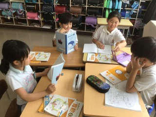 2年生 1000はどんな数(1組 7月3日) 公開日 2025/07/03 更新日 2025/07/03 各学年から 1000とはどんな数なのか考えました。「1000は⬜︎より⬜︎大きい数」「1000は⬜︎より⬜︎小さい数」「1000は⬜︎を⬜︎こ集めた数」⬜︎の中に当てはまる数を考え、班で発表しあいました。また、「いいね」「なるほど」などのあいづちのことばも入れて、発表を聞いています。 2年