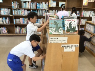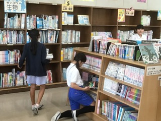 夏休みの貸出(図書館 7月11日) 公開日 2025/07/11 更新日 2025/07/11 特別活動 今日から夏休み中に読む本を5冊借りることができます。やまももタイムにさっそく図書館にやってきて、本を選んでいます。