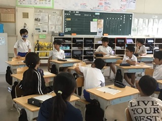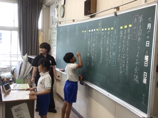 5年生 学級会(1組 7月14日) 公開日 2025/07/14 更新日 2025/07/14 各学年から 自分の行動を振り返り、次の目標を決めるための第8回「あいうえお会議」です。挨拶や授業中の態度、時間が守れたか等について意見を発表しています。話し合いを通して、レベルアップを目指します。 5年