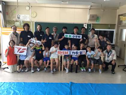 春〜夏にかけてさまざまな野菜を育てて収穫できました。スーパーやまももではたくさんの人に買ってもらい嬉しかったですね。7月にはトヨタ紡織のみなさまに来てもらい、間伐材を使ってキーホルダーやベンチづくりも行いました。上手にできました。