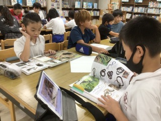 5年生 竜について調べよう(2組 9月4日) 公開日 2025/09/04 更新日 2025/09/04 各学年から 今年も読書感想画コンクールに応募します。5年生は竜と中国の子どもが出てくる物語の絵を描きます。まずは図書館で「竜」について調べています。どんな生き物なのでしょうか。 5年