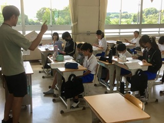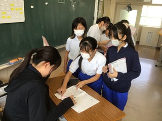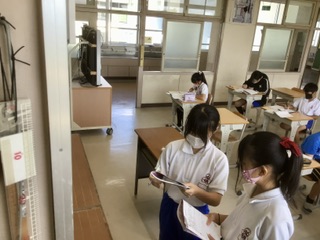 円がかかわる図形の面積等を求める学習です。難しい問題も、補助線を上手に使って考えています。